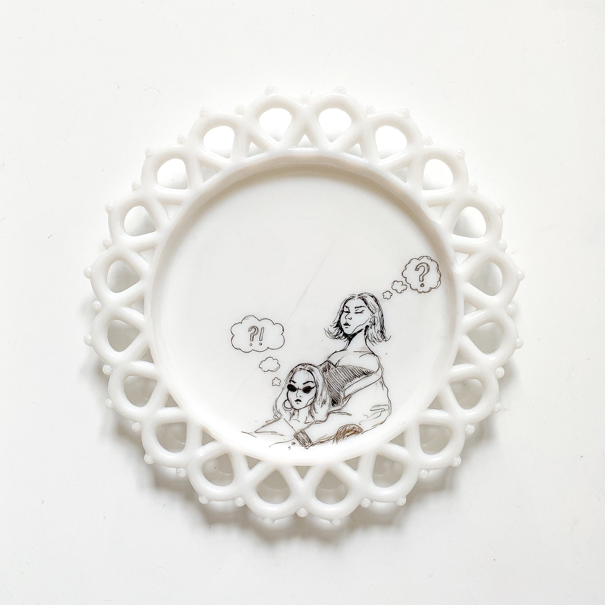 This 8.5-inch white decorative plate brings a touch of artistry to any room, featuring a detailed hand-drawn ink illustration. The fine-line design adds a unique, personal vibe to your space—whether it’s displayed on a wall, used as a centerpiece, or simply added to your table. It’s the perfect blend of style and simplicity, making it a great piece to liven up your home with a bit of character.