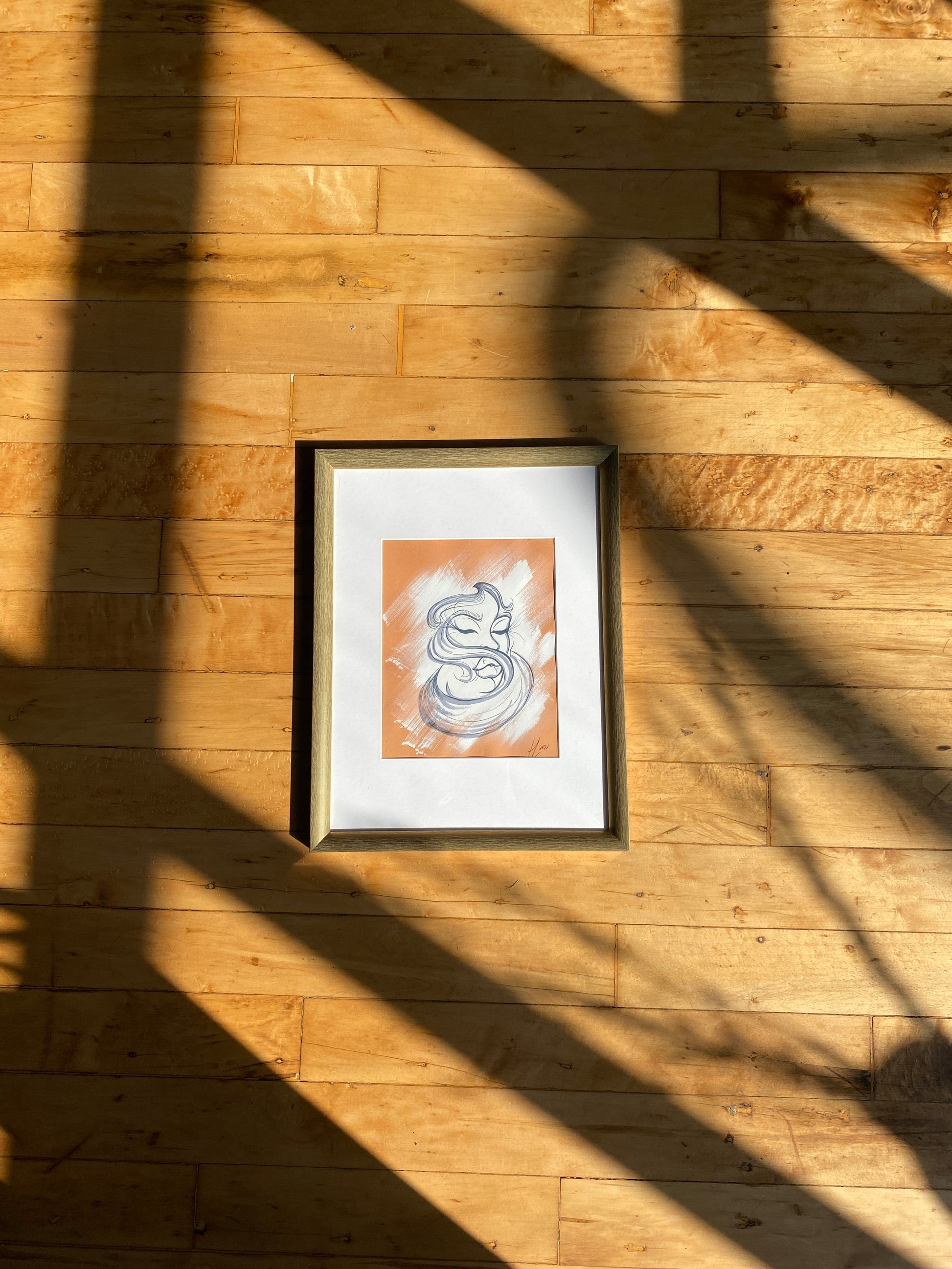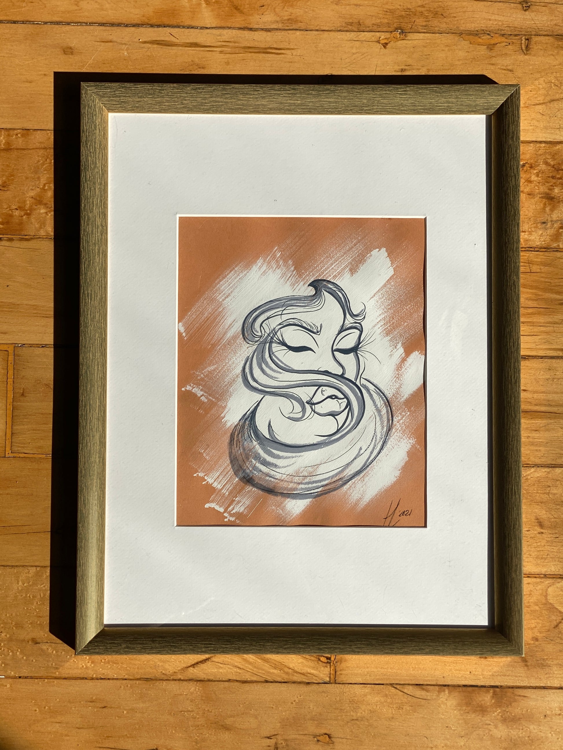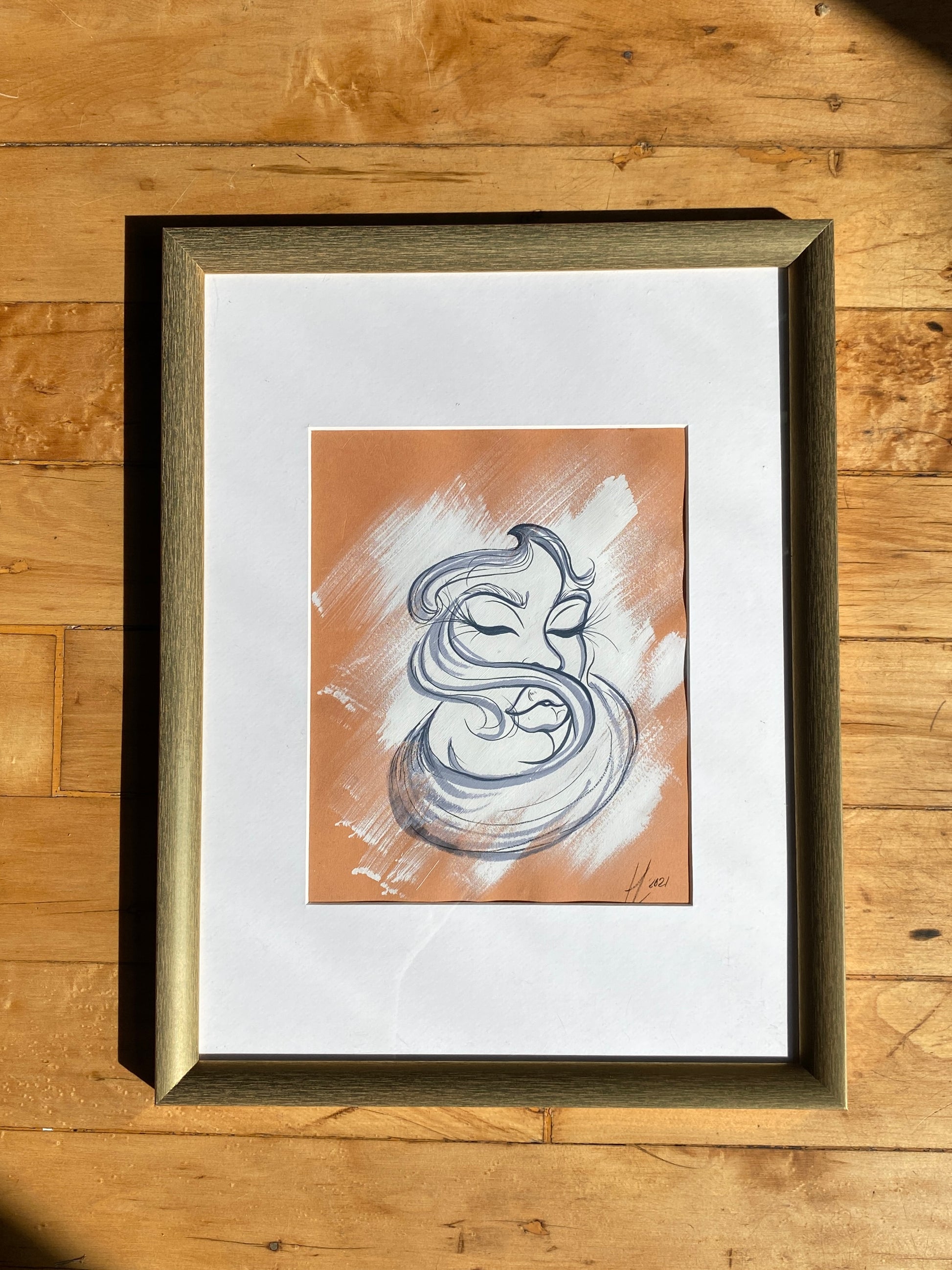 Size: Drawing 8in x 10in , Frame 13in x 18in