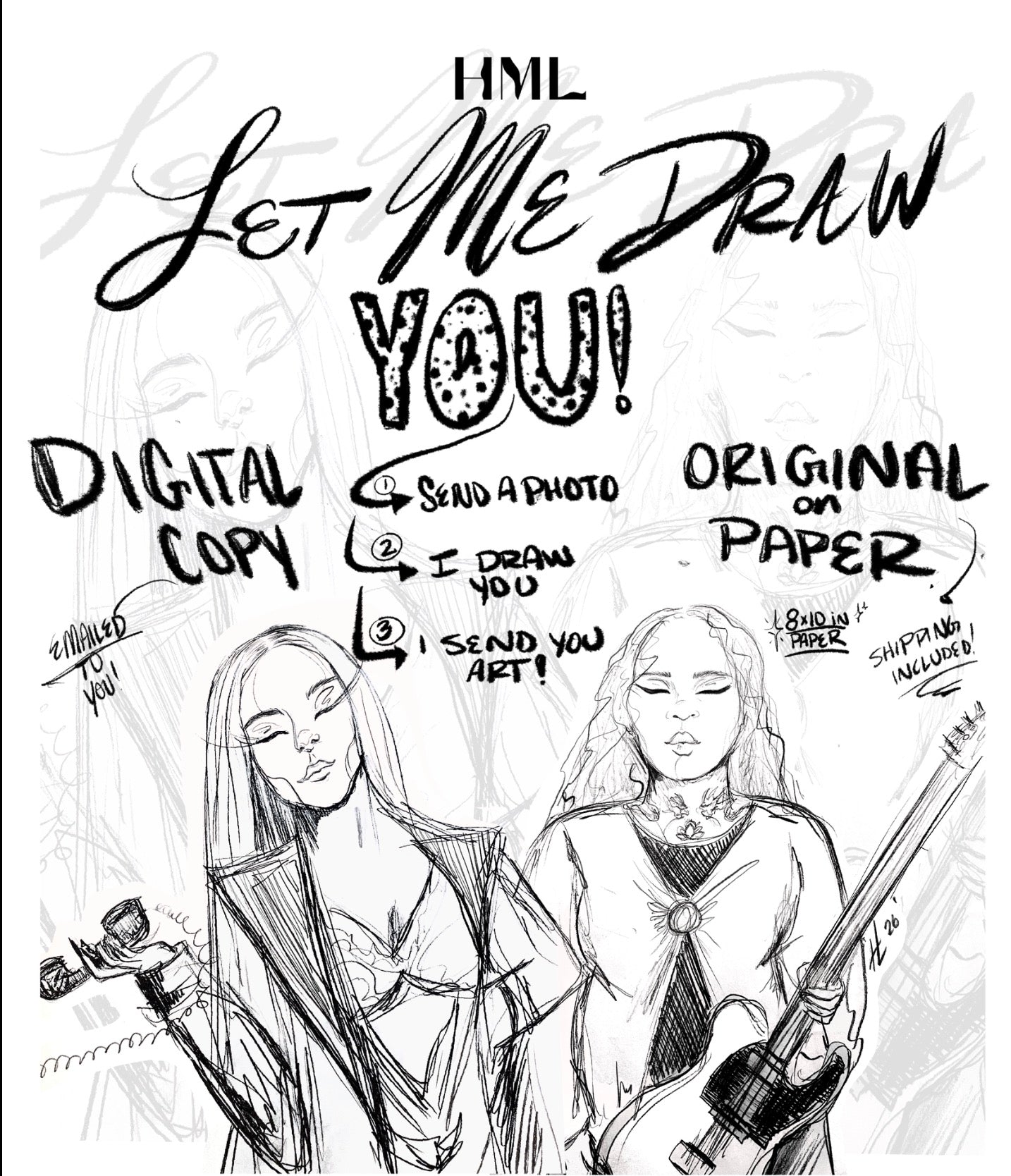 3) Your drawing will be shipped to you. (Please allow 5-7 days for shipping information unless informed otherwise)