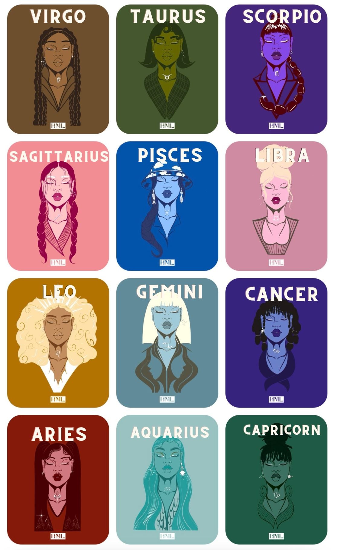 NOTE: Prints do NOT include text with zodiac name (see photos for examples), 4x6 post card size does include the HML logo at the bottom